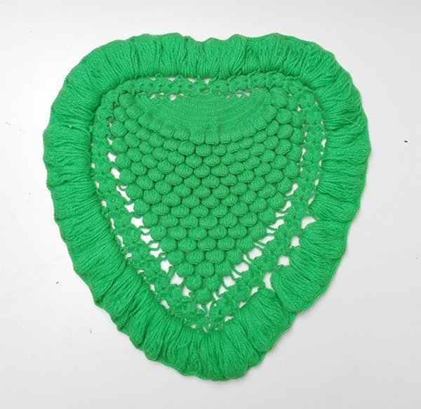 Zielone serce wykonane z akrylowej włóczki. Przestrzenny wzór.