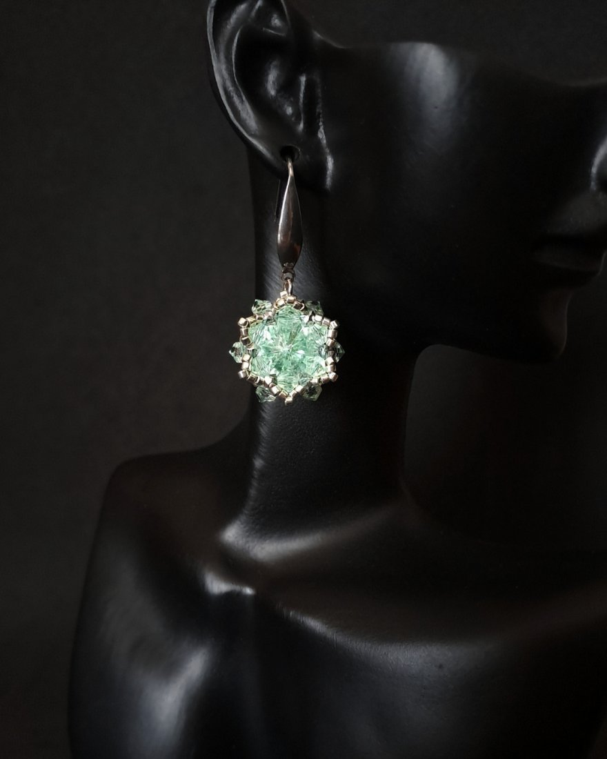 Tagi: #biżuteria z kryształów, #kolczyki na wiosnę i lato, #pastelowa zieleń, #wiszące kolczyki na wiosnę