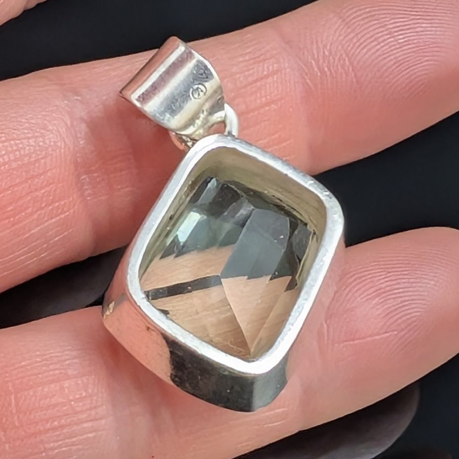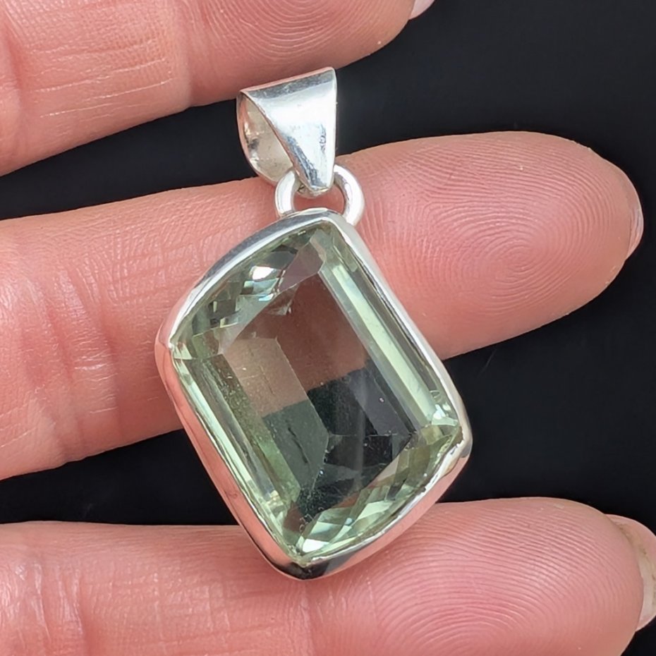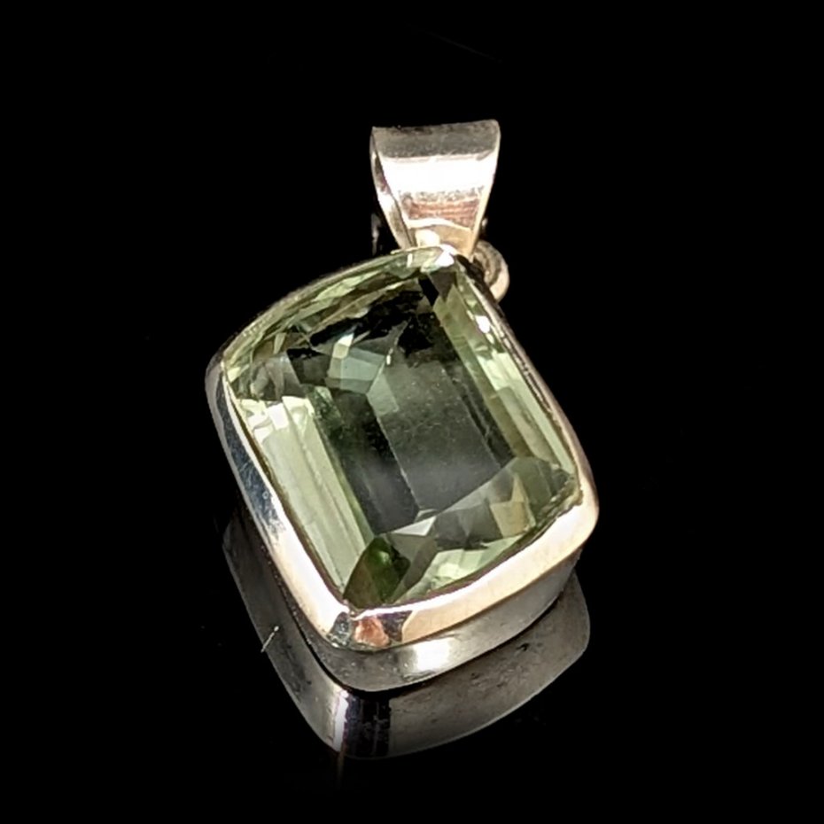 Bardzo elegancki wisior wykonany ze srebra próby 925 oraz zielonego kryształu ametystu o precyzyjnym szlifie. Przepiękny okaz. Wymiary oprawy kamienia 25 x 21 mm. Długosć max 37 mm. Waga 13 g. Wykonany przez dostawcę kamieni. Wisior zostanie wysłany w ozdobnym pudełeczku.