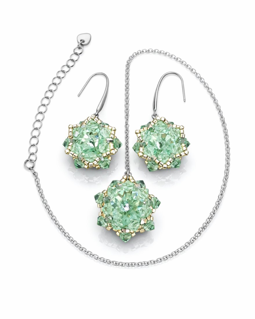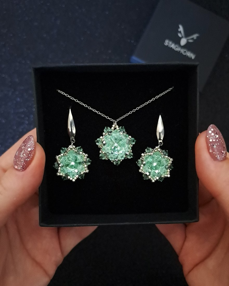 Elegancki komplet biżuterii wykonany ręcznie z kamieni Preciosa Rivoli Maxima to propozycja dla kobiet, które cenią najwyższą jakość materiałów, precyzję wykonania i ponadczasową formę.