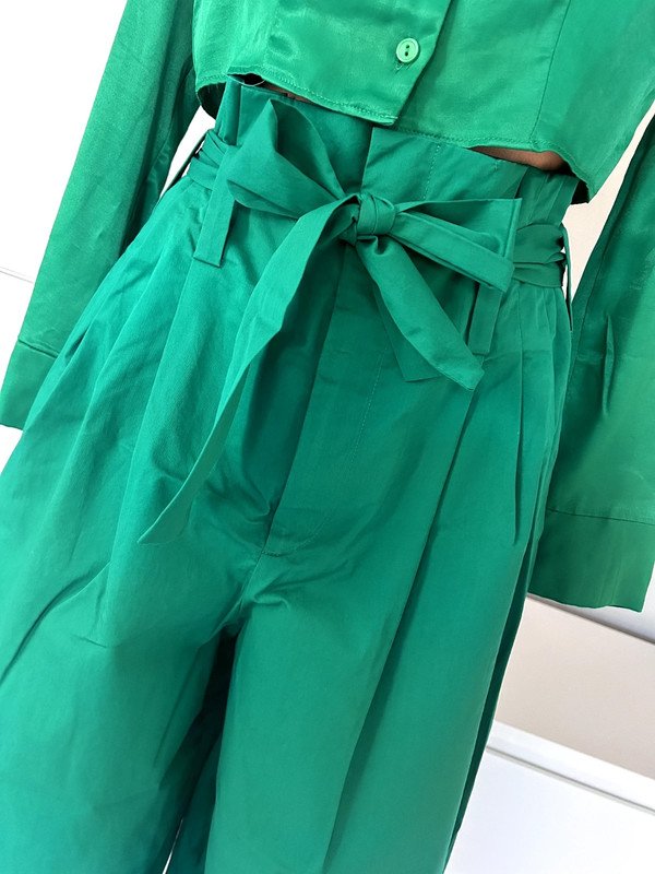 4.  > Zielony zestaw bluzka Primark 100 % wiskoza a'la satyna i spodnie Zara szerokie 100 % bawełna (nr 7107164)