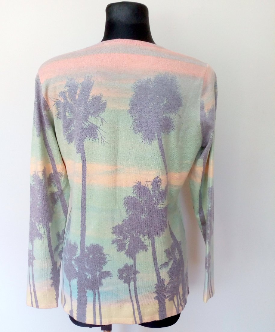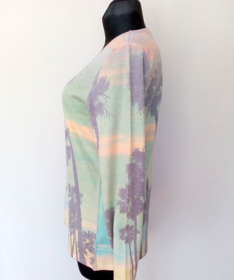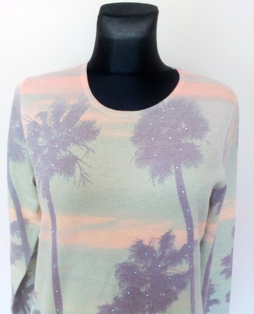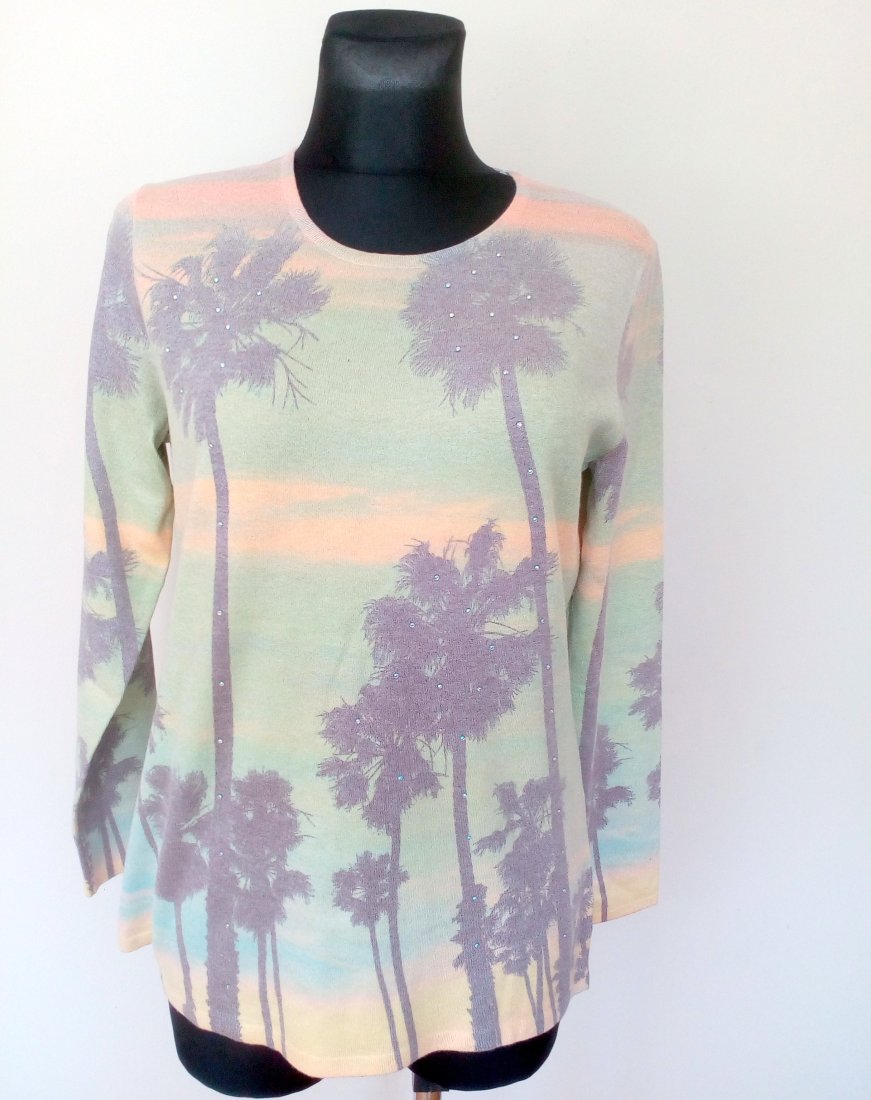 Cienki sweter/ bluzka w pastelowych kolorach, dekolt okrągły, przód delikatnie zdobiony drobnymi cyrkoniami