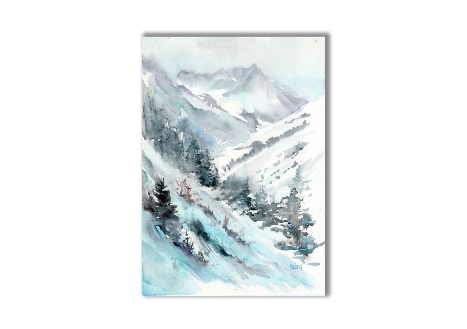 Obraz ręcznie malowany, wykonany farbami akwarelowymi znanych producentów; na białym, wysokogatunkowym papierze.