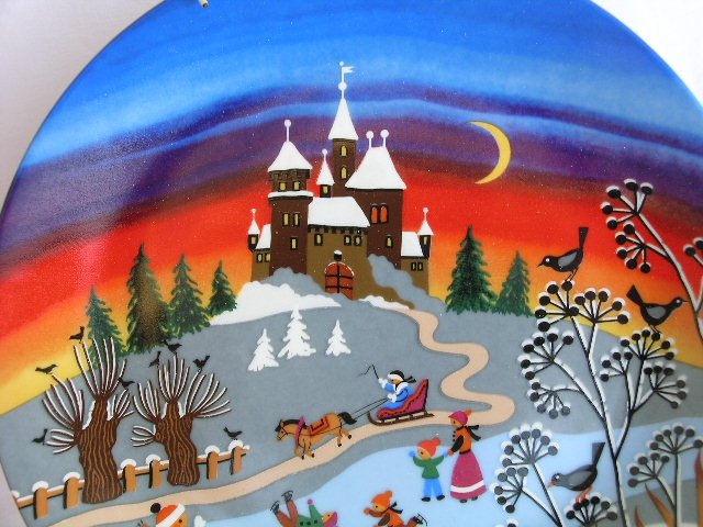 Fantastyczny talerz porcelanowy wg projektu Barbary Furstenhofer. Świetnie graficzny, bajkowo barwny, radośnie ilustratorski :) Leciutka porcelana, malatura połyskująco-satynowa. Sygnowany. 19 x 2 cm. Stan zachowania bardzo dobry.