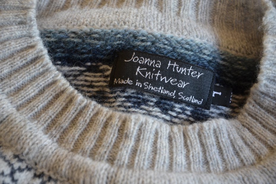 brak metki ze składem ale jest za to wszywka na karku "made in Shetland, Scotland";