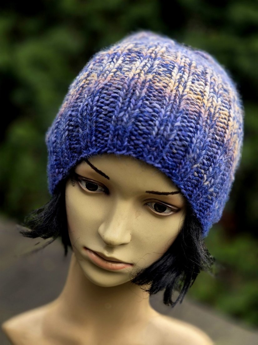 Ciepła, mięsista, miękka i cudowna w dotyku czapka wykonana ręcznie na drutach. Połączyłam cieniutką nitkę 75% kid moher/25% jedwab z włoską kolorową włóczka (50% wełna dziewicza, 50% poliakryl). Czapka bezszwowa, świetnie dopasowuje się do głowy.