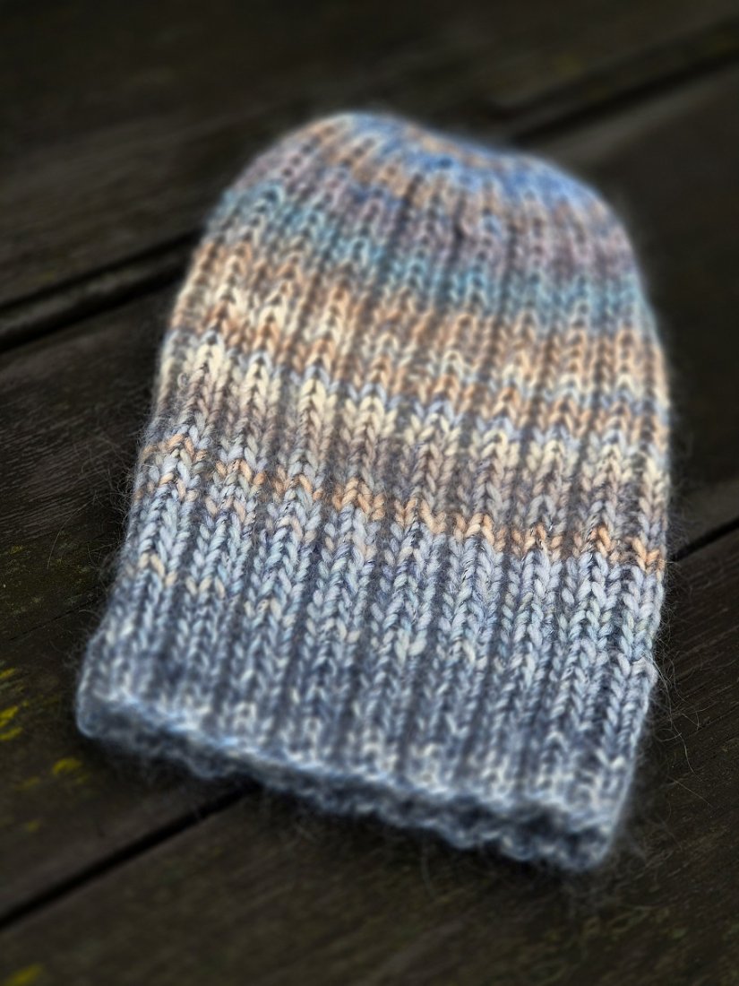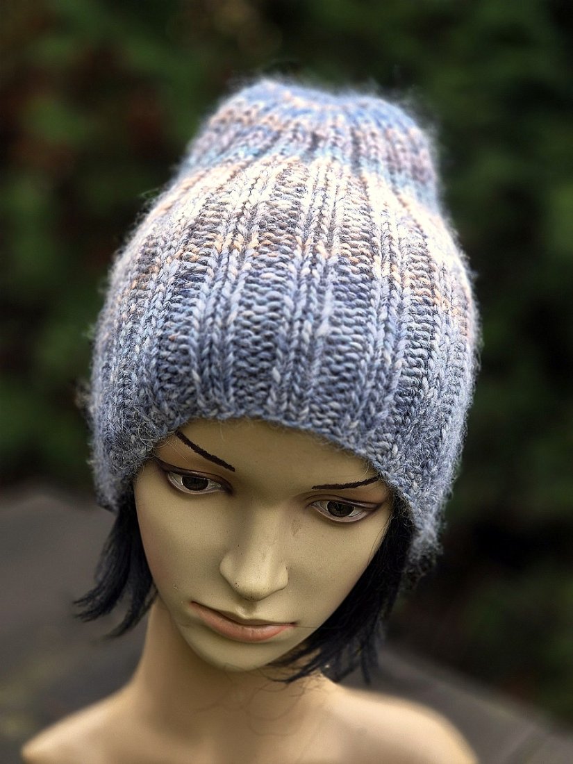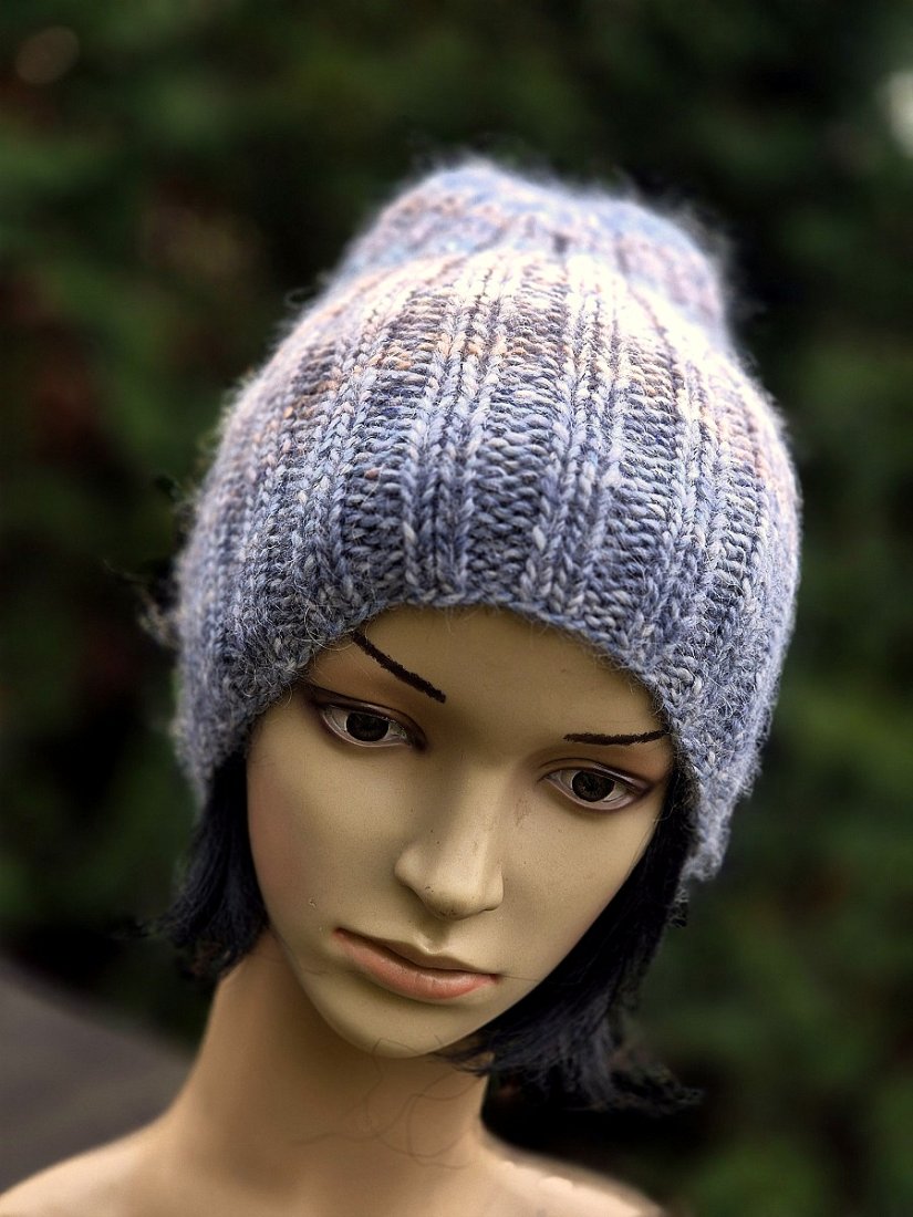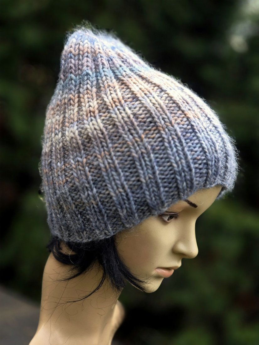 Ciepła, mięsista, miękka i cudowna w dotyku czapka wykonana ręcznie na drutach. Połączyłam cieniutką nitkę 75% kid moher/25% jedwab z włoską kolorową włóczka (50% wełna dziewicza, 50% poliakryl). Czapka bezszwowa, świetnie dopasowuje się do głowy.