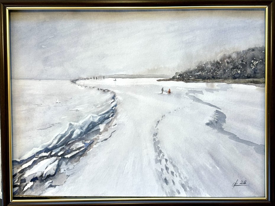 Zimowe wędkowanie 30/42cm. Original Akwarela A3 ręcznie malowana.