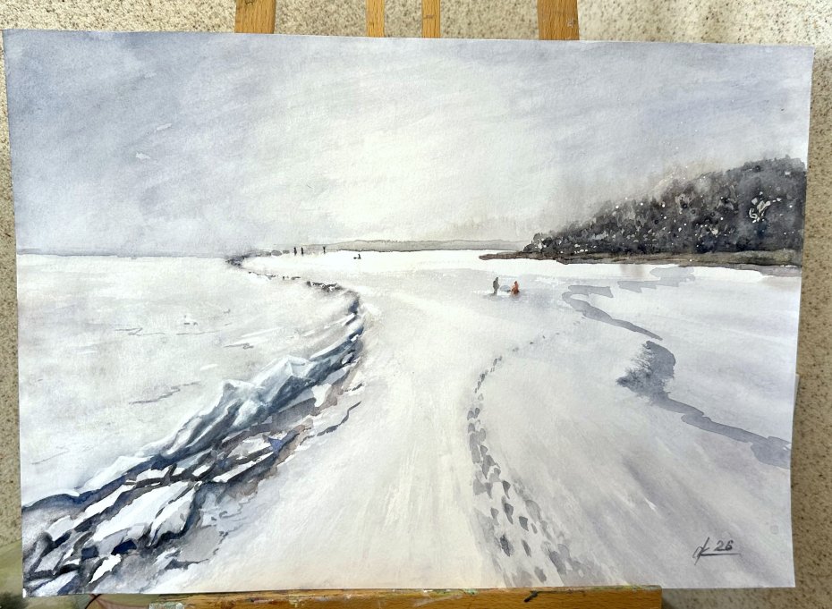 Rozmiar: 30 x 42 cm. Data założenia: 2026. Rysunek wykonany akwarelami na wysokiej jakości papierze. Oryginał, sygnowany.