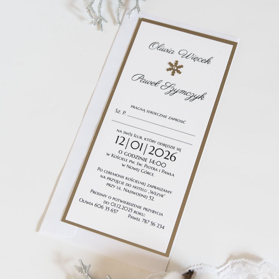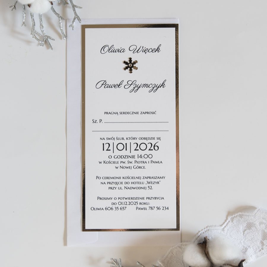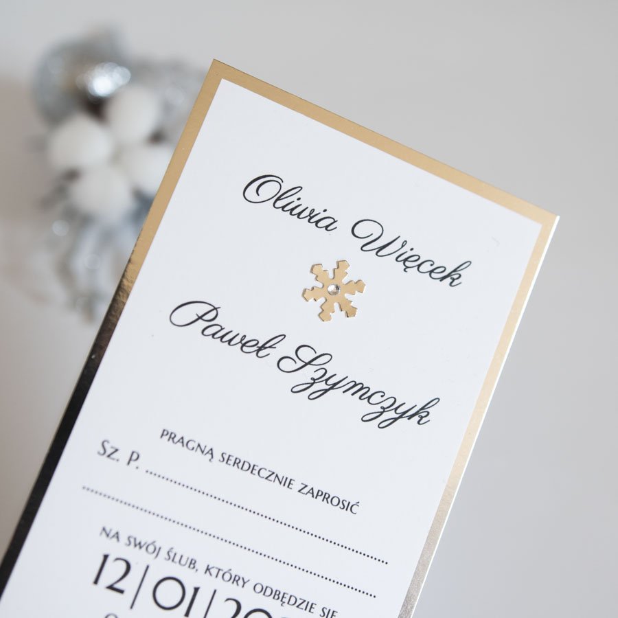 Elagancja w nowoczesnym wydaniu. Srebrne zaproszenia ze śnieżynką idealne na zimowy ślub i wesele.