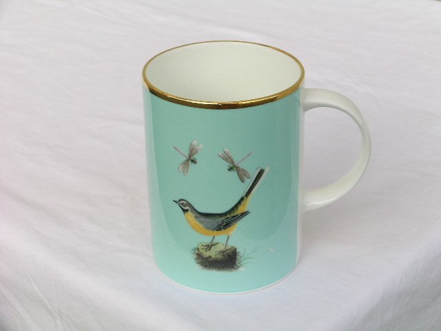Kubek z lekkiej, szlachetnej porcelany, pod światło intrygująco prześwitującej, sygnowany. W zupełnie wyjątkowym kolorze, jakby turkusującym błękicie z kroplą ożywczej mięty. Urzeka nie tylko barwą czy jakością, ale i ptasią obecnością :) Wygodny. Do zakochania i codziennej celebracji. Rant bogato karatowo złocony. Edycja z 2007 roku z serii Harmonia Ruralis z dawnymi rycinami Jamesa Boltona. 7,5 x 10,5 x 10 cm. Stan zachowania bardzo dobry. Prawdziwy skarb !