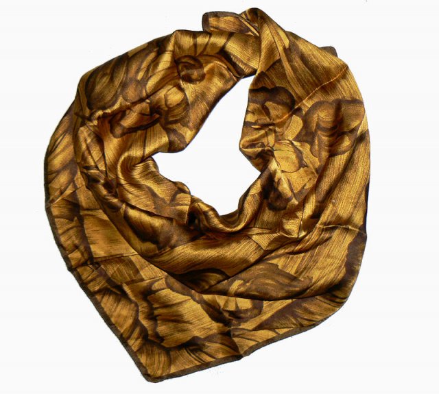 Chusta w pięknym złocisto brązowym kolorze w delikatny kwiatowy motyw.