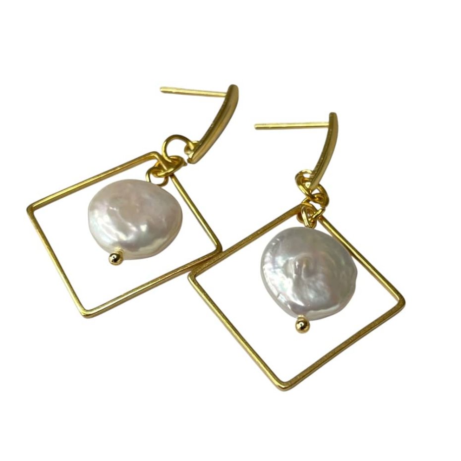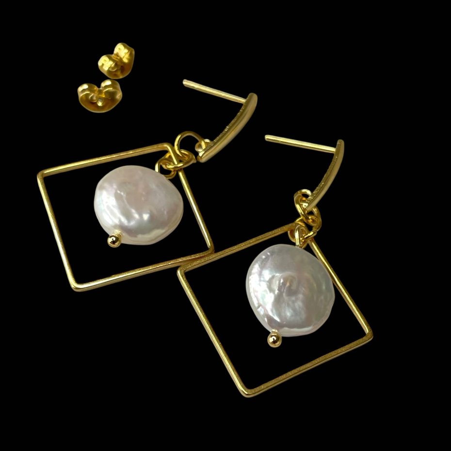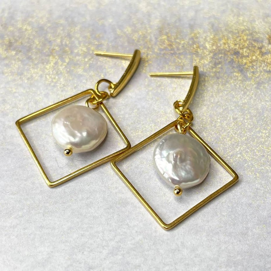 Tagi: #geometryczne kolczyki, #kolczyki romby, #kolczyki z perłami, #perłowe kolczyki