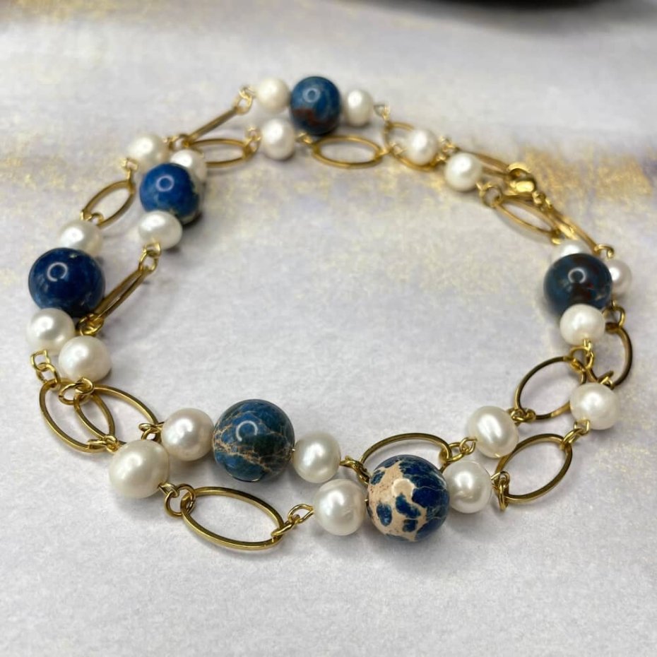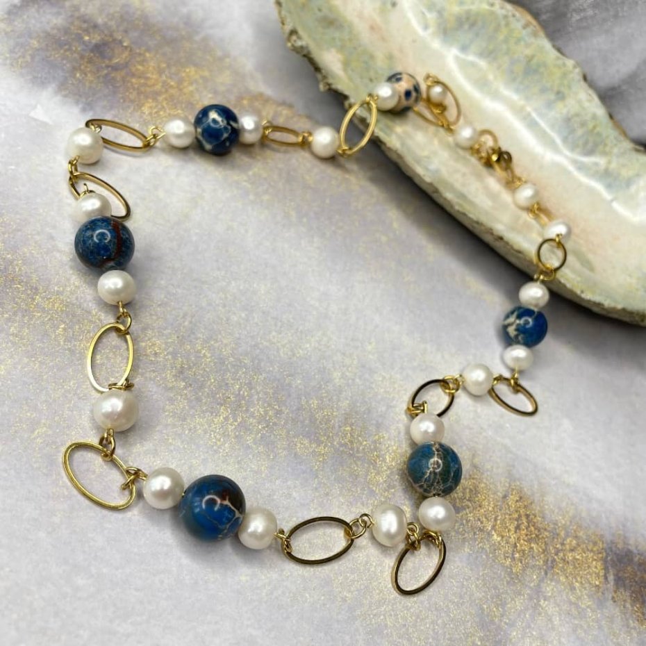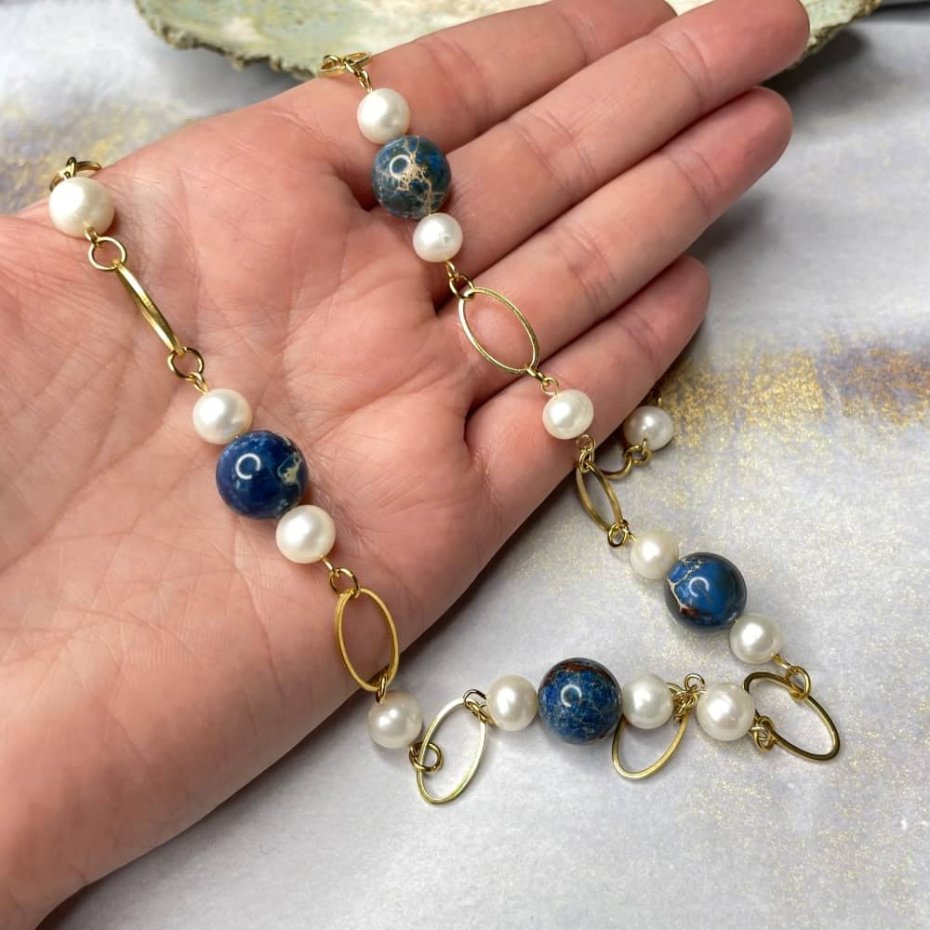 Tagi: #naszyjnik z jaspisem, #naszyjnik z perłami, #złocony łańcuszek, #łańcuszkowy naszyjnik