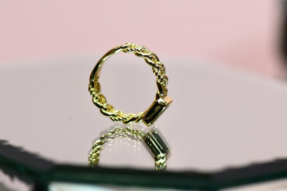 Obrączka wykonana z ogniw naprzemiennych, jedno przeplatane, jedno gładkie.