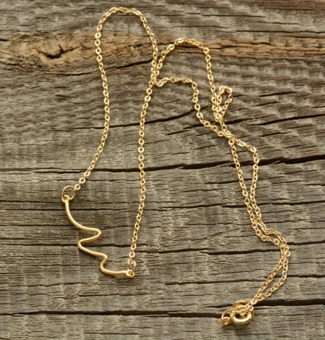 geometryczna zawieszka w kształcie fali ma 3cm długości, pięknie komponuje się również z innym naszyjnikami.
