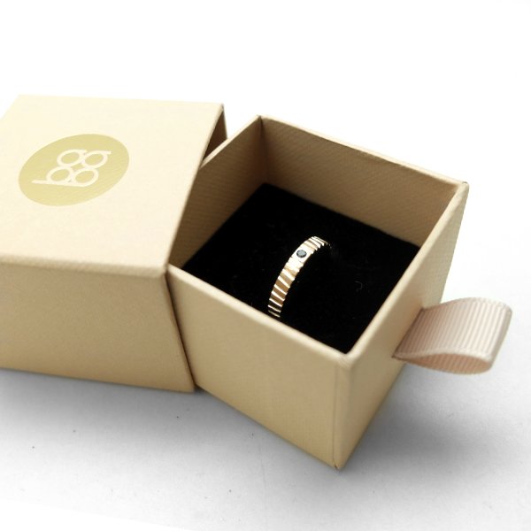 Unikatowa biżuteria wykonana jest ręcznie z najwyższą dbałością o detale i wraz z dowodem zakupu zapakowana w eleganckie firmowe pudełko. Każdy pierścionek ma wybitą próbę stopu metalu szlachetnego, z którego jest wykonany oraz imiennik autorki.