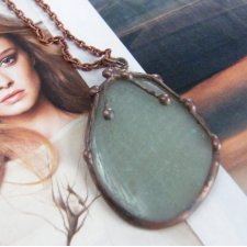 wisiorek wykonany ręcznie z miedzi, pokryty srebrem. ozdobiony jaspise...