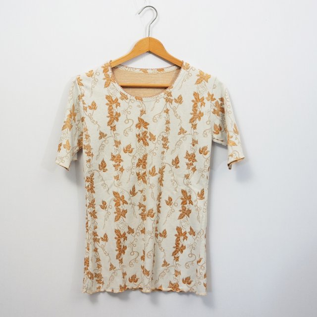 Śliczna bluzka z wyjątkowego szarego materiału w złoto-rdzawe listki