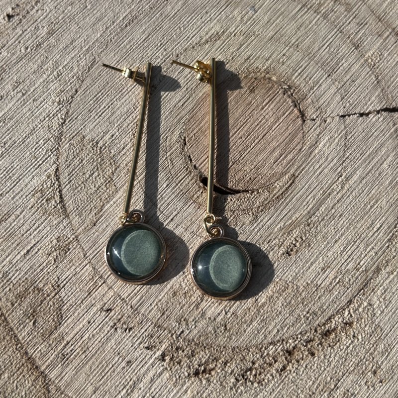 Kolczyki w kolorze złotym z akcentem w kolorze paproci to idealny dodatek na chłodniejsze dni – łączą elegancję z delikatną energią barw natury.