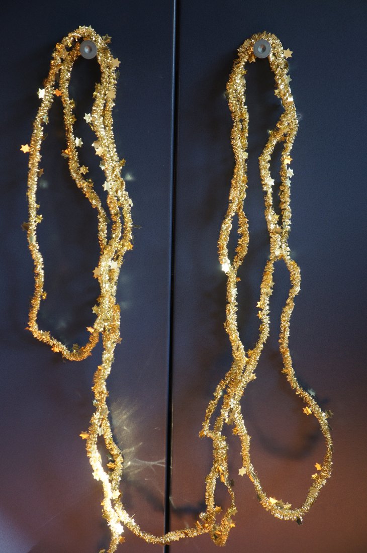 Dwa łańcuchy wykonane z folii/tworzywa. Idealne do ozdoby drzewka bożonarodzeniowego. Stan bardzo dobry.