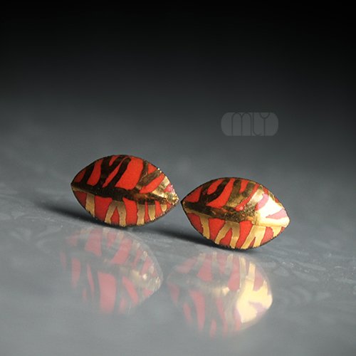 Ceramiczne kolczyki w formie sztyftów, ręcznie wykonane z delikatnej gliny kamionkowej, jednostronnie szkliwione koralowo czerwonym szkliwem, na antyalergicznych sztyftach.Długość ok. 12mm.Polecam . Termin realizacji zamówienia to 1-2 dni