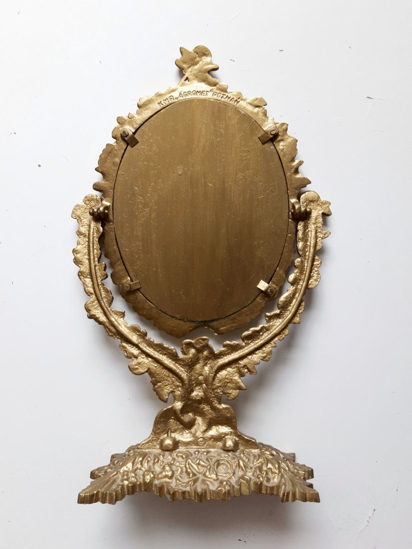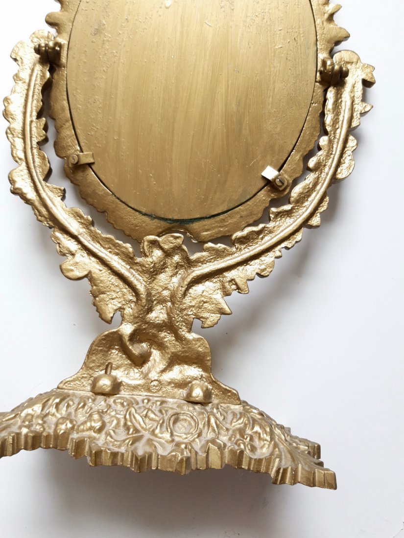Według mnie jest to odlew z metalu. Lustro jest naprawdę ciężkie zważywszy na swoje niezbyt wielkie przecież gabaryty.