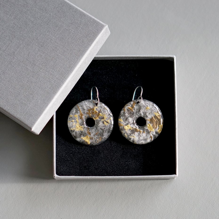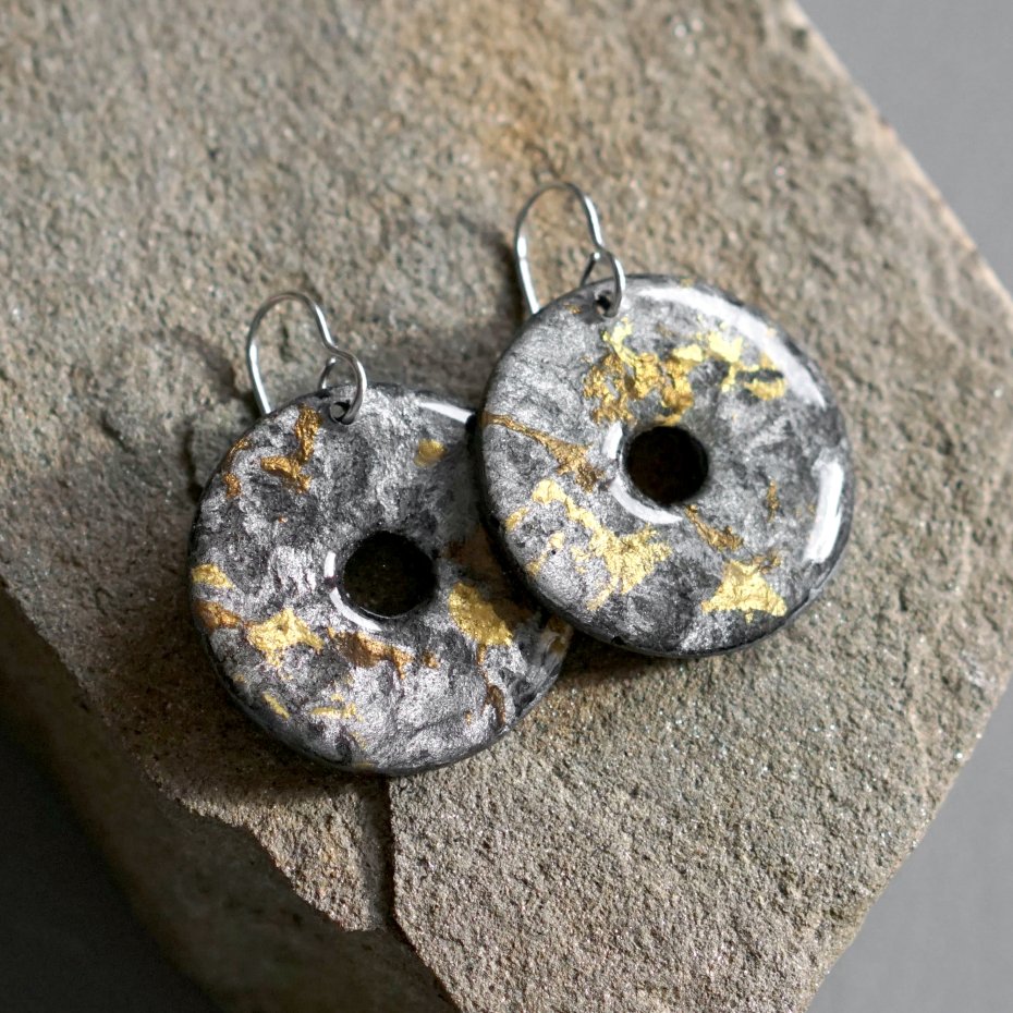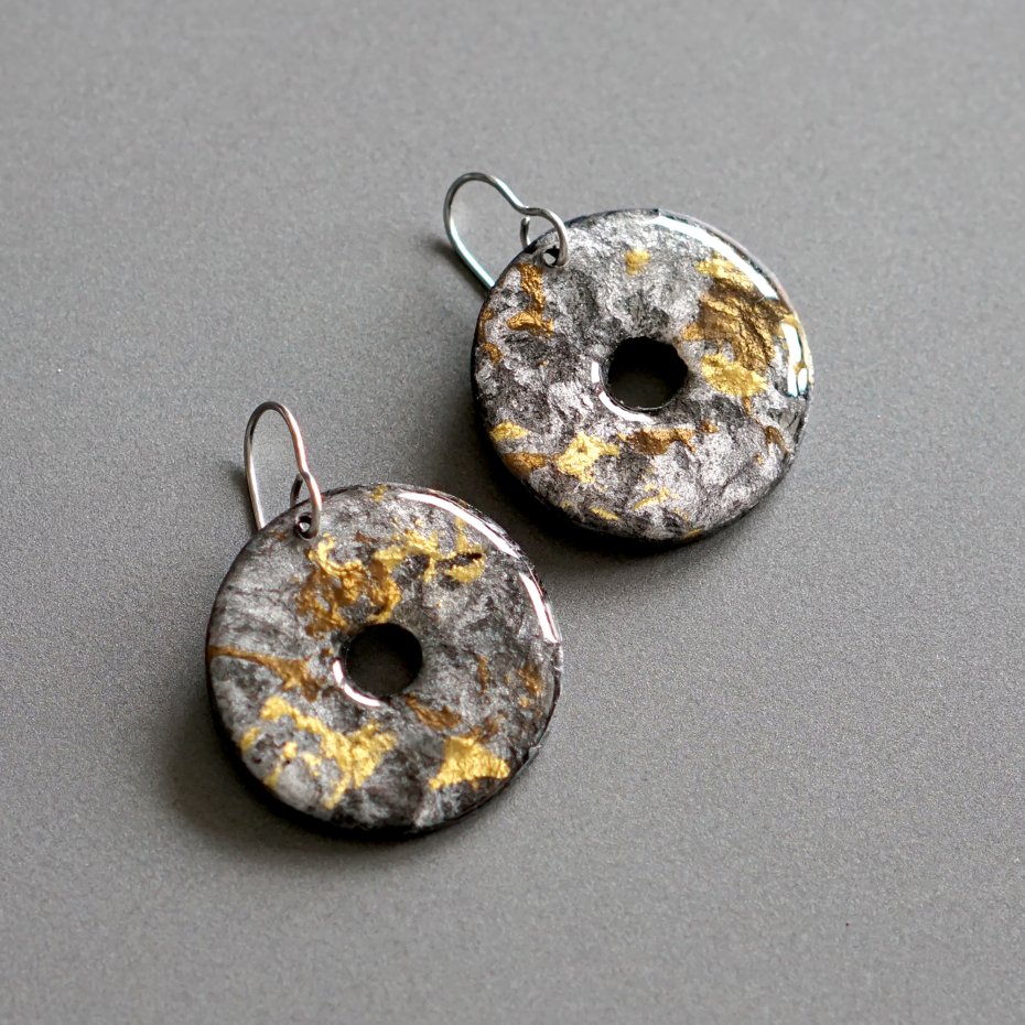 Tagi: #duże wiszące kolczyki koła, #lekkie industrialne kolczyki, #modna biżuteria artystyczna, #prezent dla żony