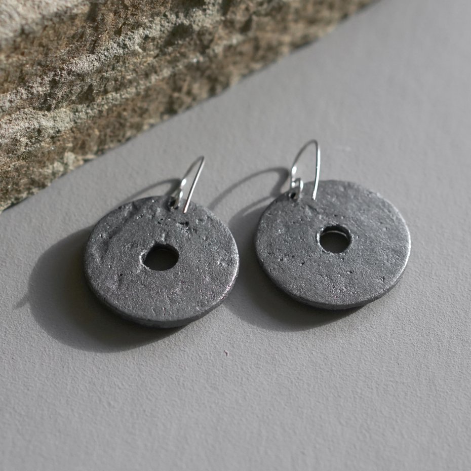 Industrialne kolczyki koła zaprojektowana z myślą o osobach, które cenią sobie ręcznie tworzone dodatki w duchu less waste.