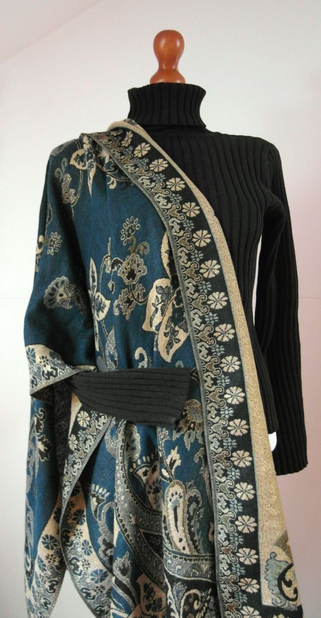 Dwustronny,duży szal złoto zielony.