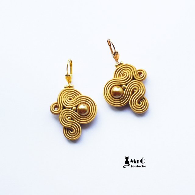 Materiał: sznurki soutache,szklane perełki, bigle pozłacane