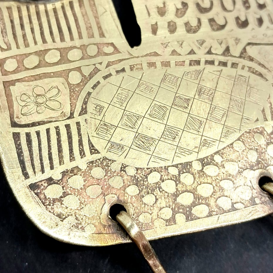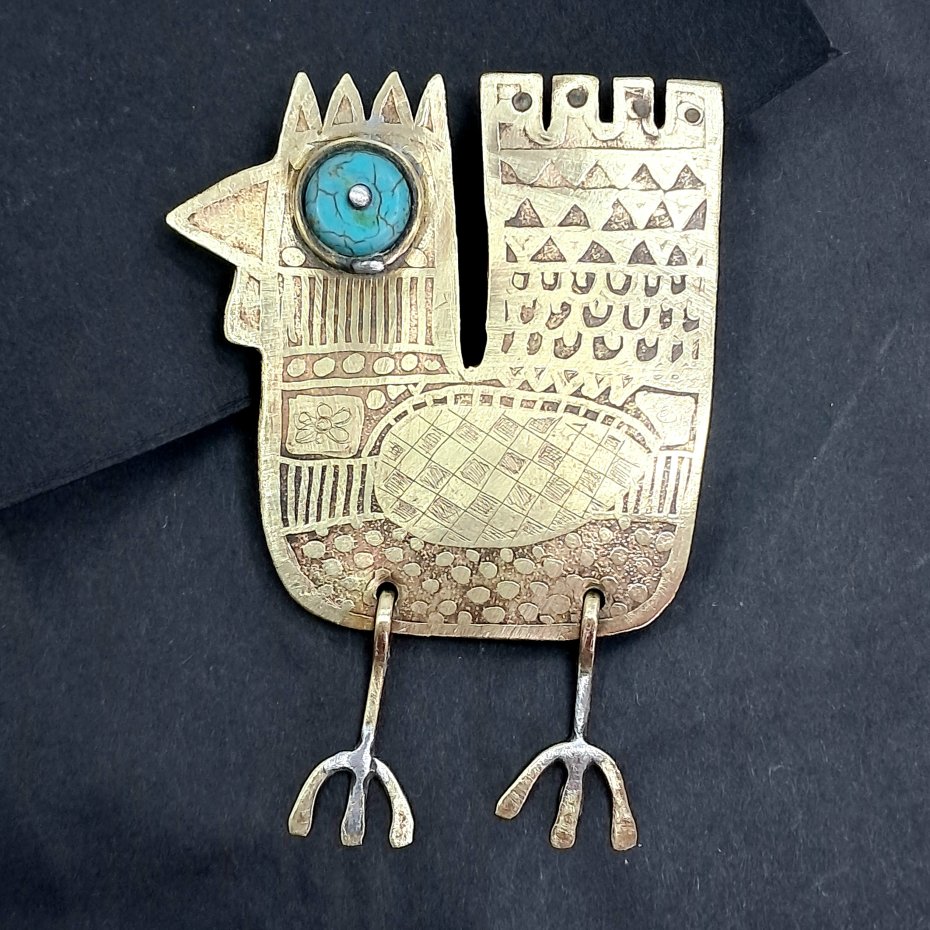Kogut broszka wykonany ręcznie z mosiądzu.