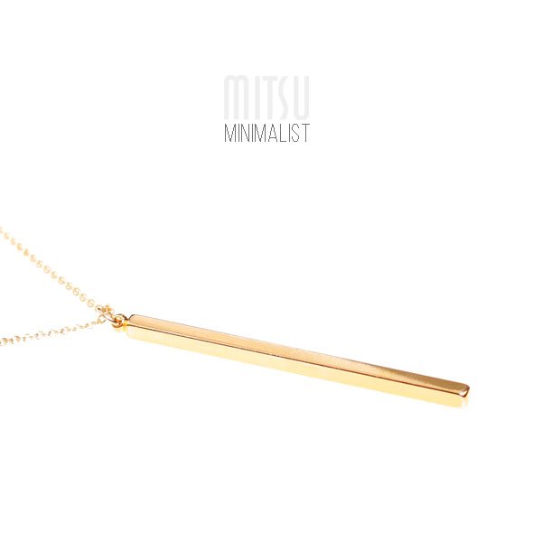 Minimalistyczny, leciutki, stylowy, wyrafinowany naszyjnik. Wykonany z brązu platerowanego 16 karatowym złotem. Łańcuszek mierzy 41cm. prostopadłościan 4,5 cm. Podróżuje ładnie zapakowany. :) MUST HAVE SEZONU