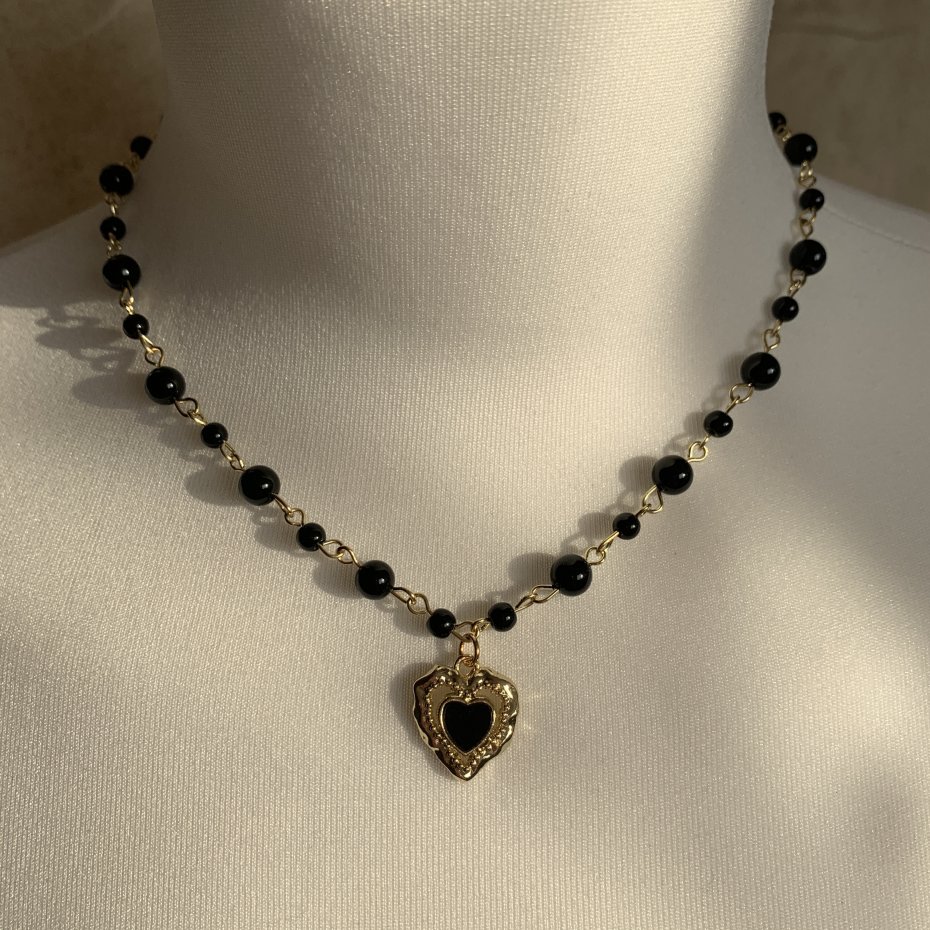 Tagi: #naszyjnik serce, #onyks kamień czarny, #serce, #vintage style