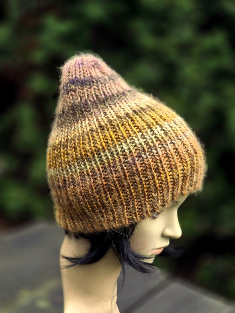 Ciepła, mięsista, miękka i cudowna w dotyku czapka wykonana ręcznie na drutach. Połączyłam cieniutką nitkę 75% kid moher/25% jedwab z włoską kolorową włóczka (25% wełna dziewicza, 75% akryl). Czapka bezszwowa, świetnie dopasowuje się do głowy.