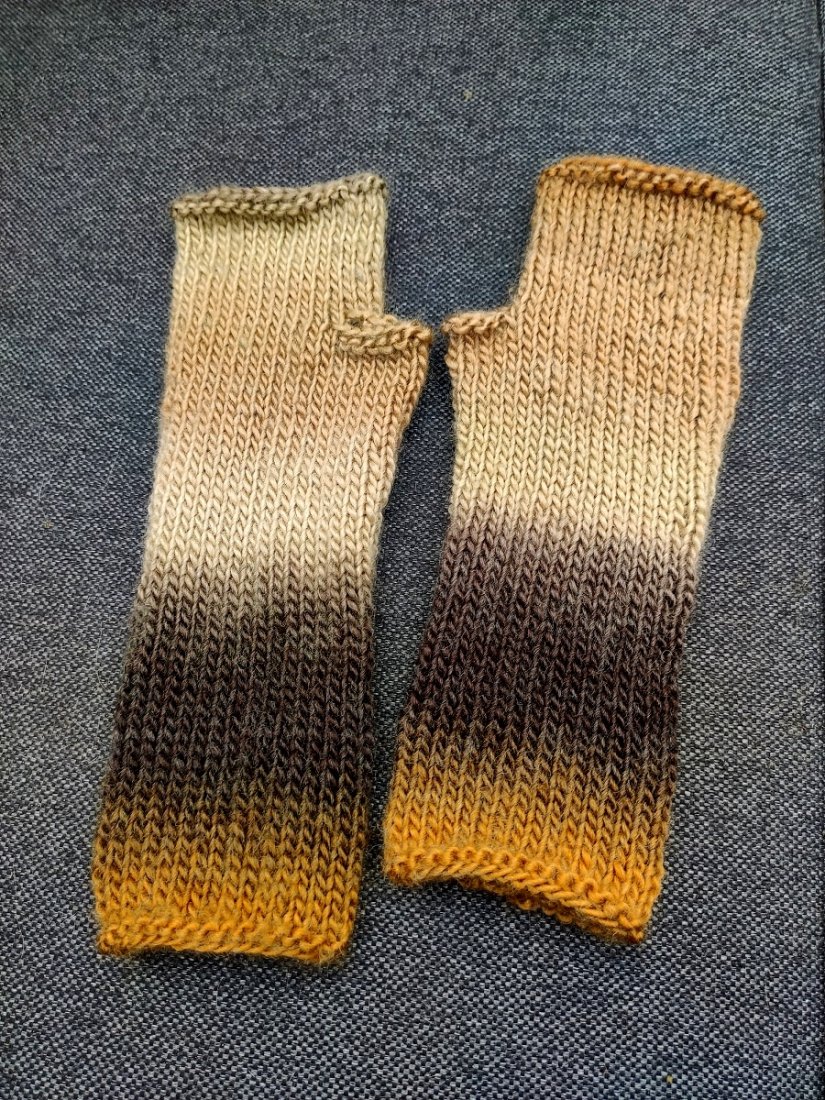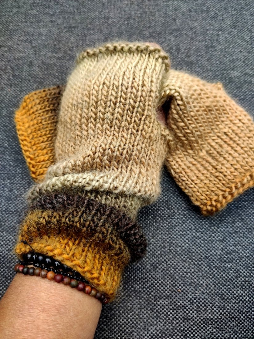 Ciepłe mitenki wykonane na drutach z rewelacyjnej włóczki prod. hiszpańskiej ( 25% wool, 75% akryl), miękkie i przyjemne w dotyku - bezszwowe, długość całkowita ok. 28 cm.