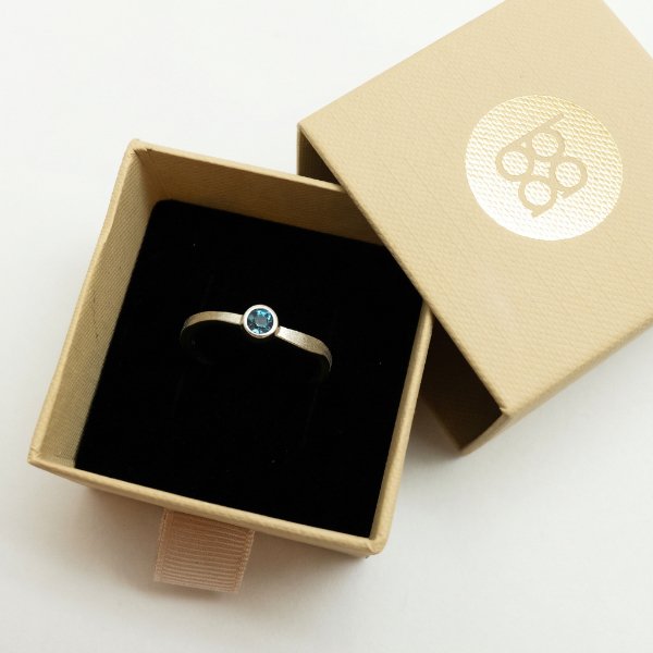 Unikatowa biżuteria wykonana jest ręcznie z najwyższą dbałością o detale i wraz z dowodem zakupu zapakowana w eleganckie firmowe pudełko. Damy o ekologię: całość opakowania biżuterii jest wykonana z papieru. Każdy pierścionek ma wybitą próbę stopu metalu szlachetnego, z którego jest wykonany oraz imiennik autorki (bw.).