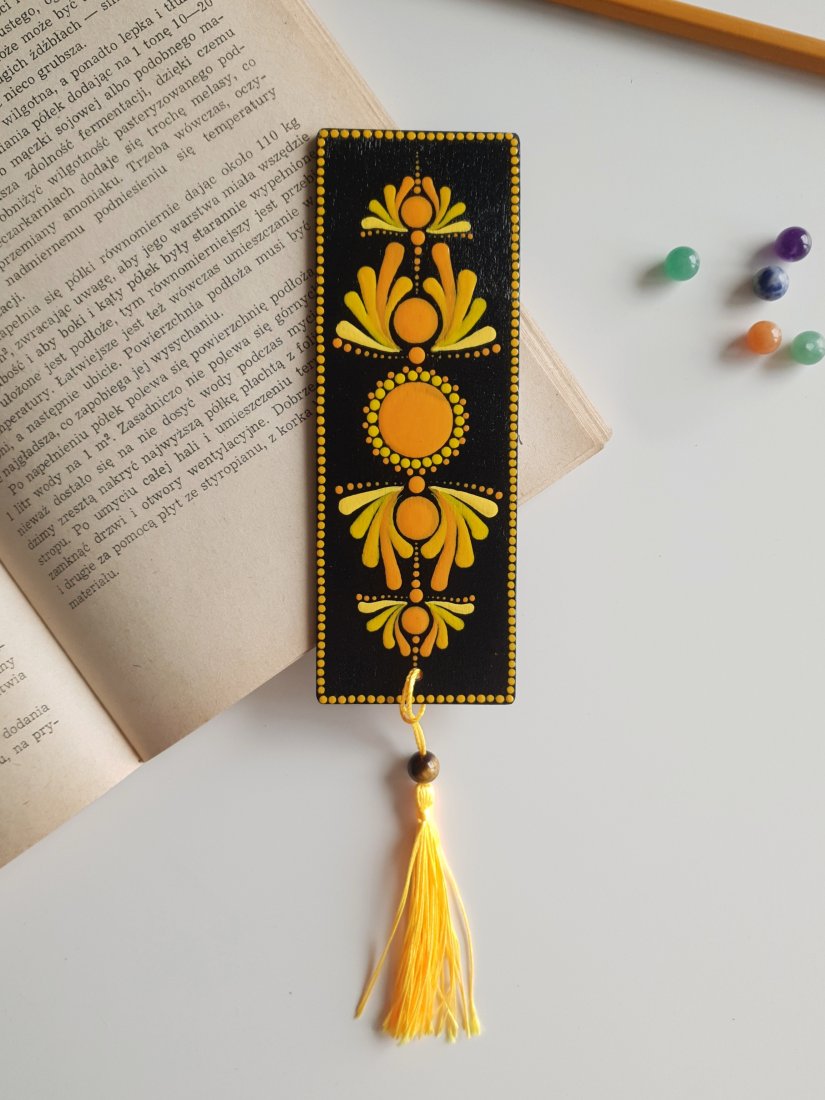 Ręcznie malowane zakładki z kamieniami naturalnymi wspierającymi czakry - 7 Czakr do wyboru - Żółty - Czakra splotu słonecznego