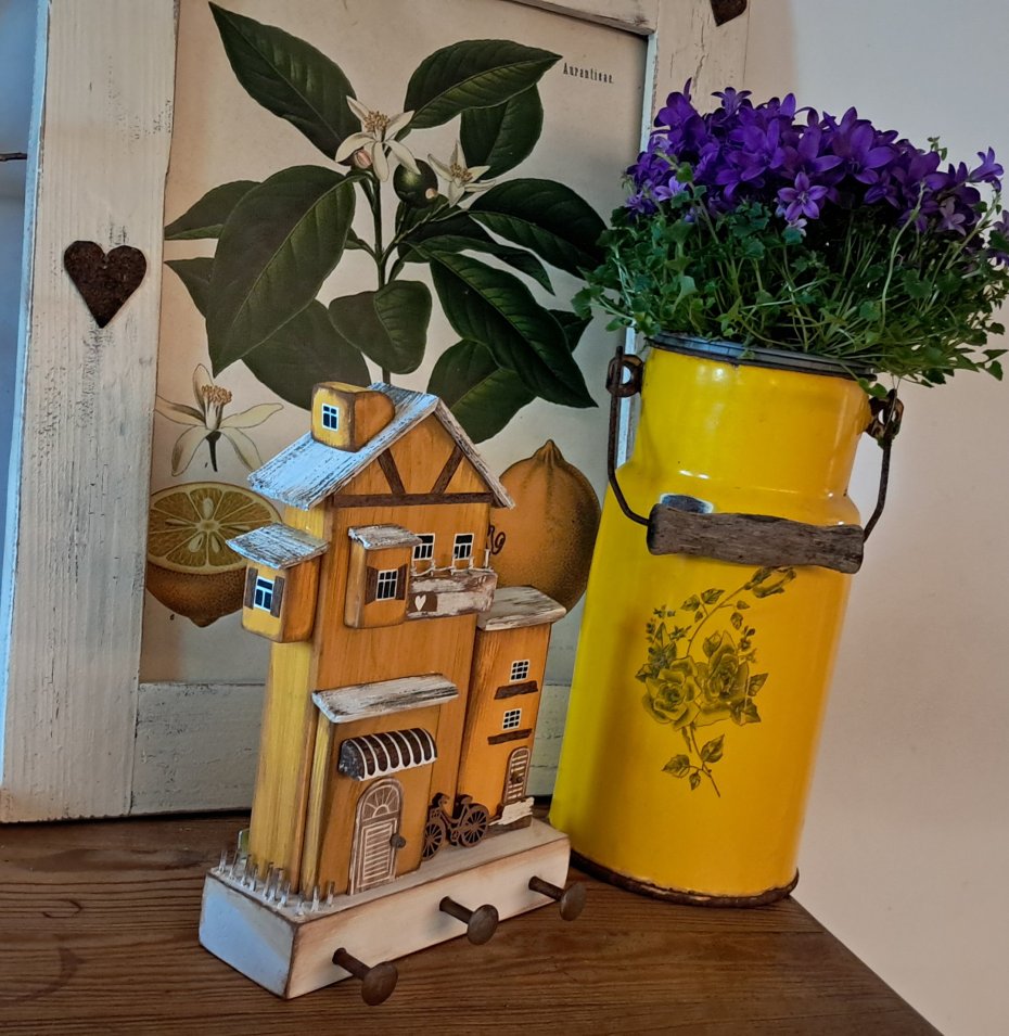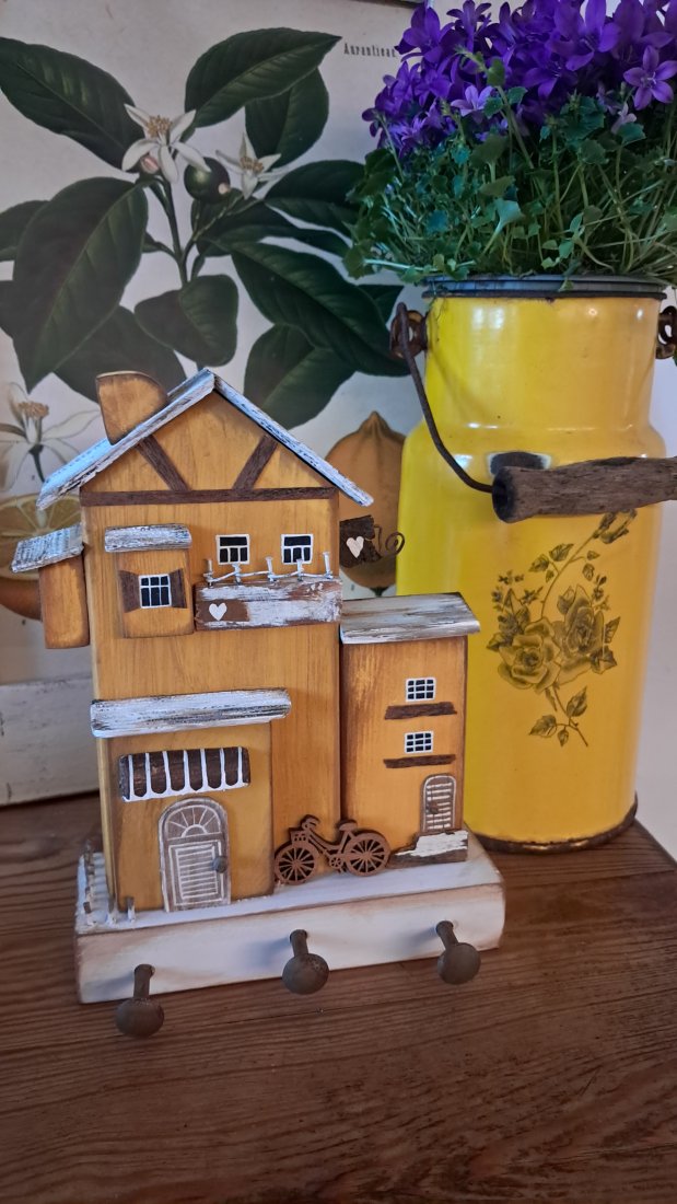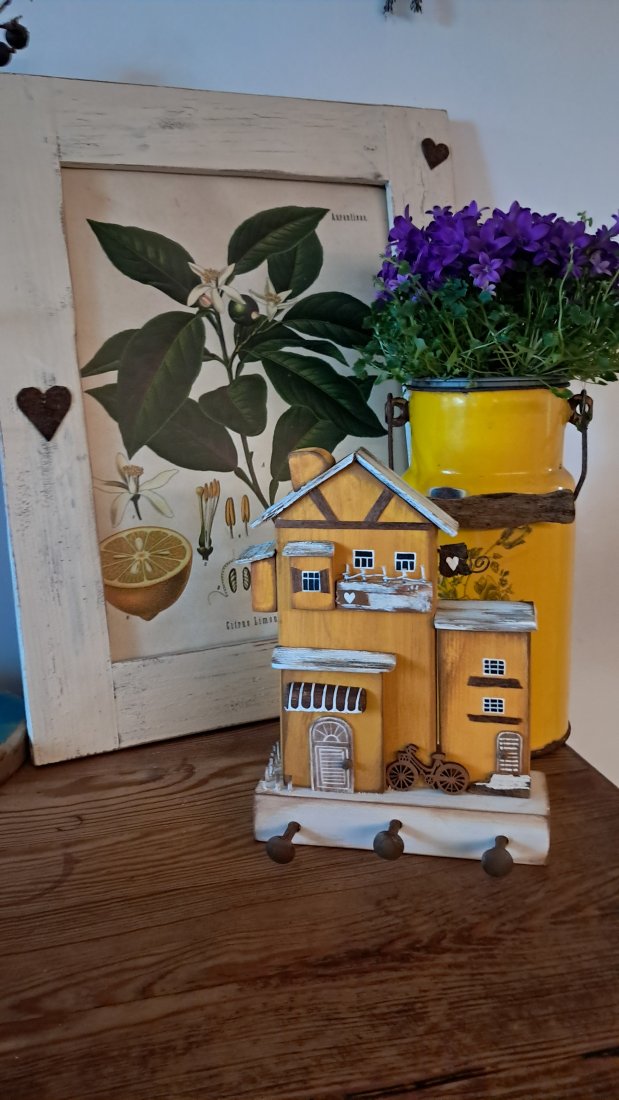 Dla wszystkich wielbicieli drewna i naturalnych dekoracji proponuję rustykany trójwymiarowy wieszak z domkami.