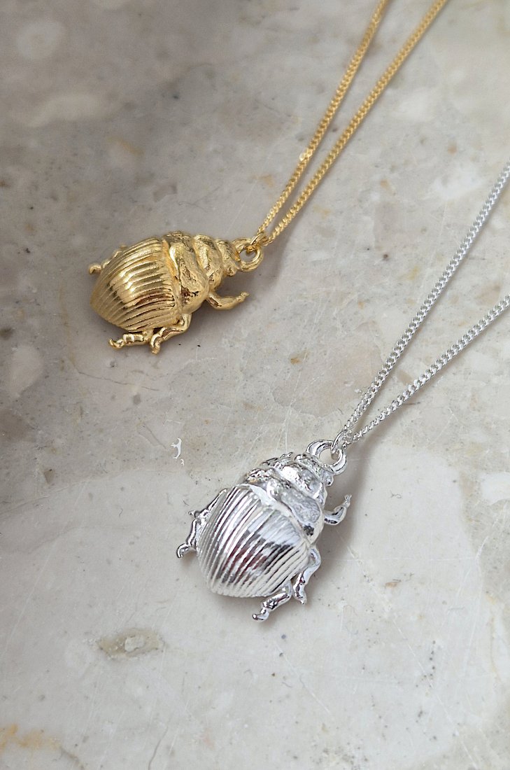 Naszyjnik z zawieszką w kształcie żuka. Wykonany ze srebra pr.925.