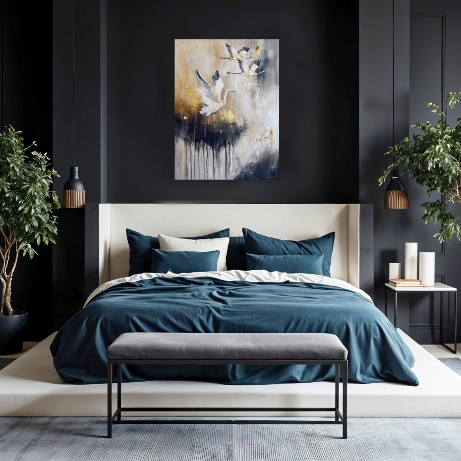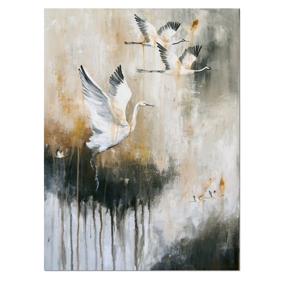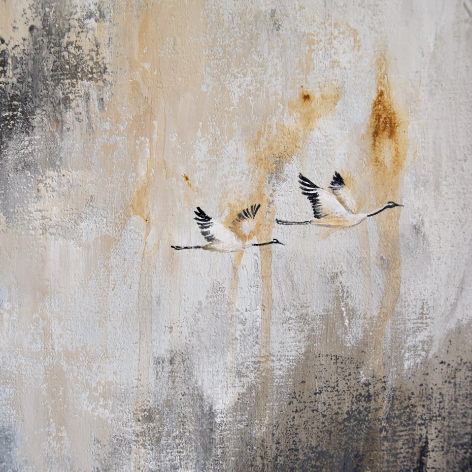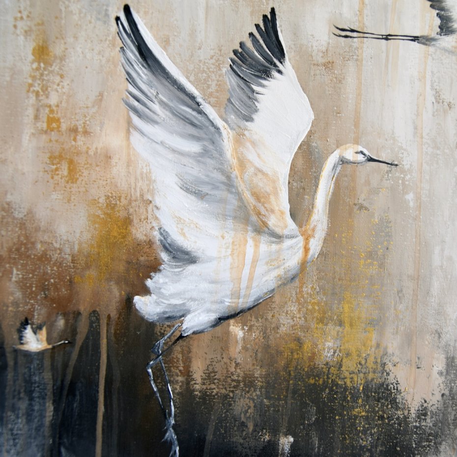 Tagi: #obraz ręcznie malowany, #obraz z ptakami, #obraz żurawie, #obrazy do salonu