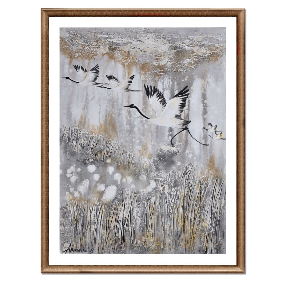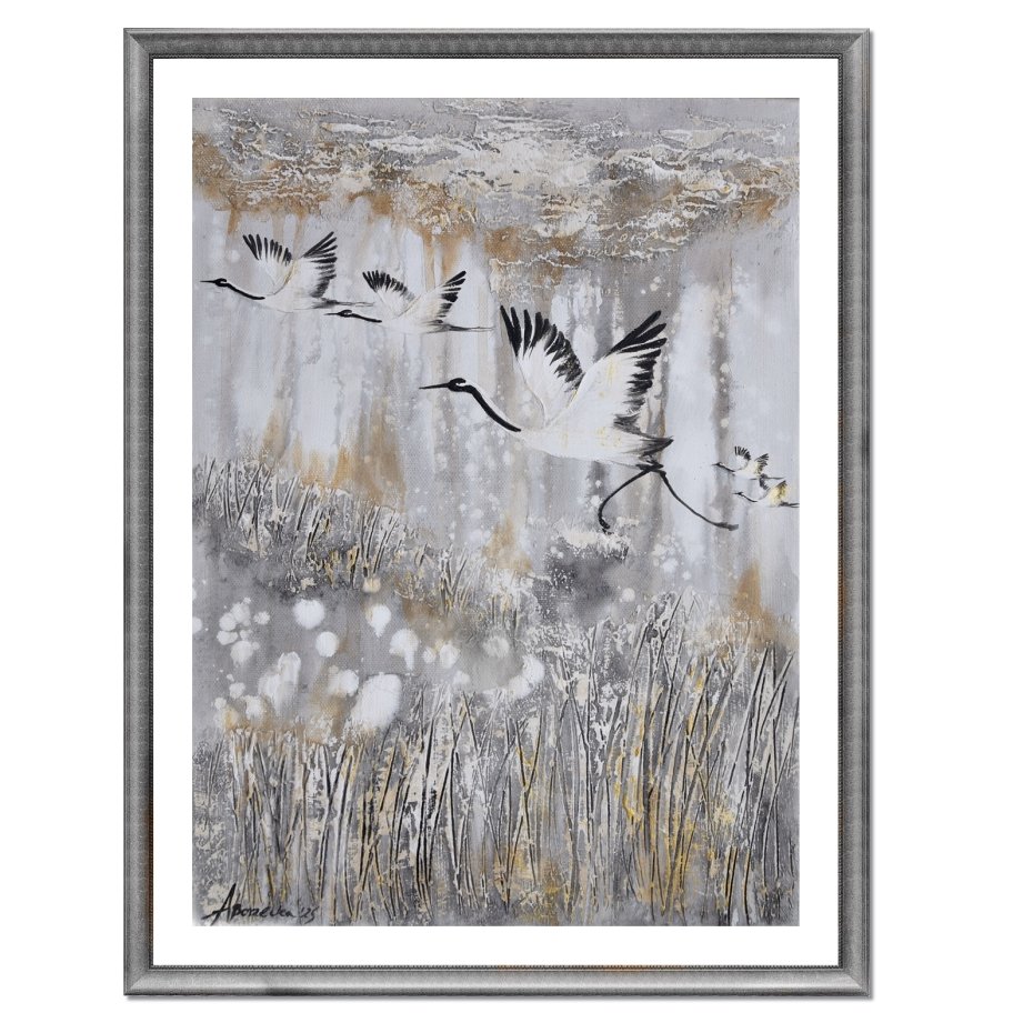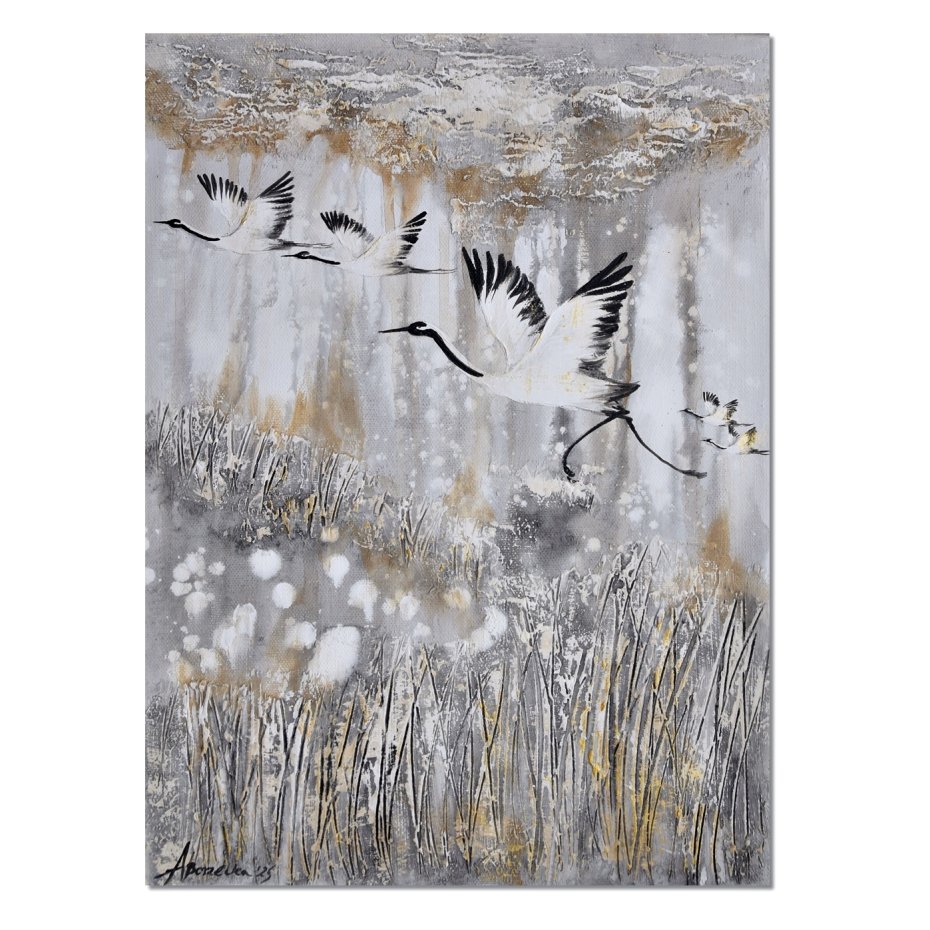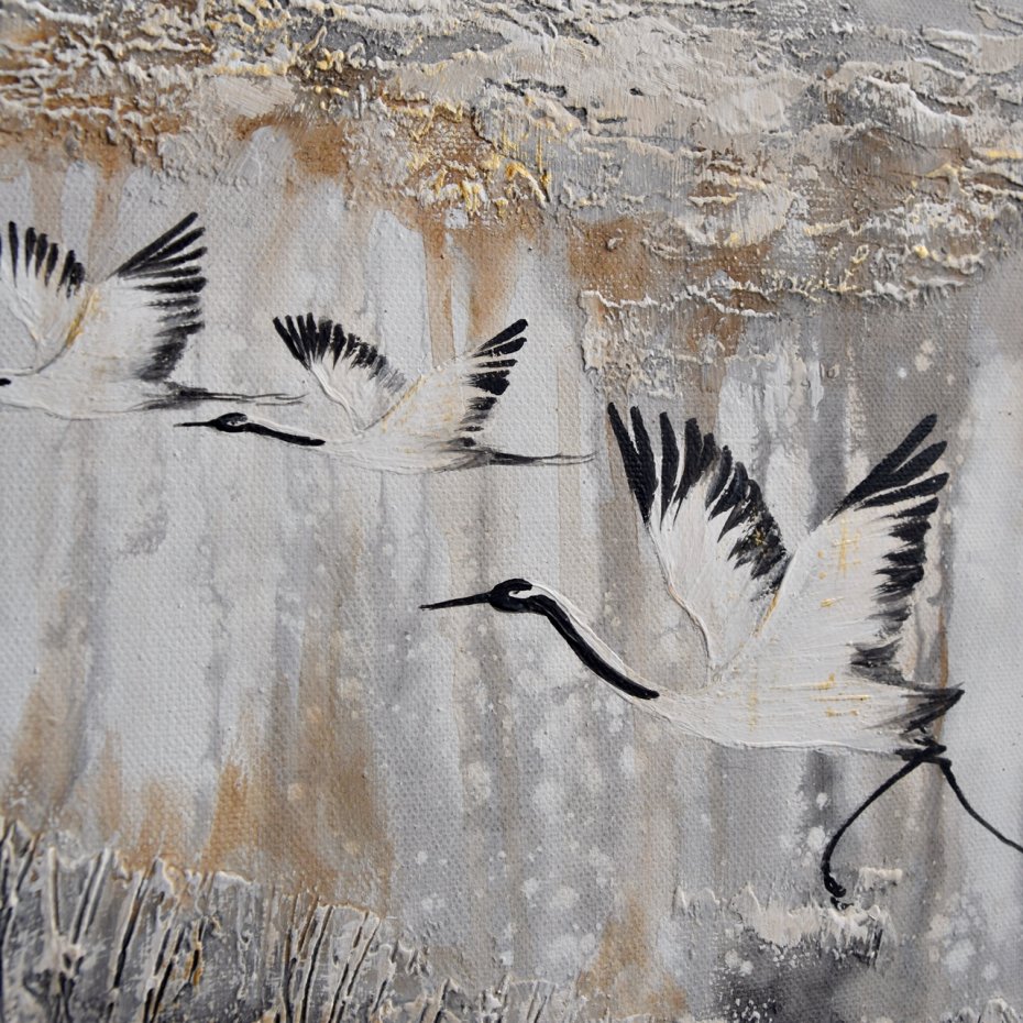Tagi: #obraz ręcznie malowany, #obraz z ptakami, #obraz żurawie, #obrazy do salonu