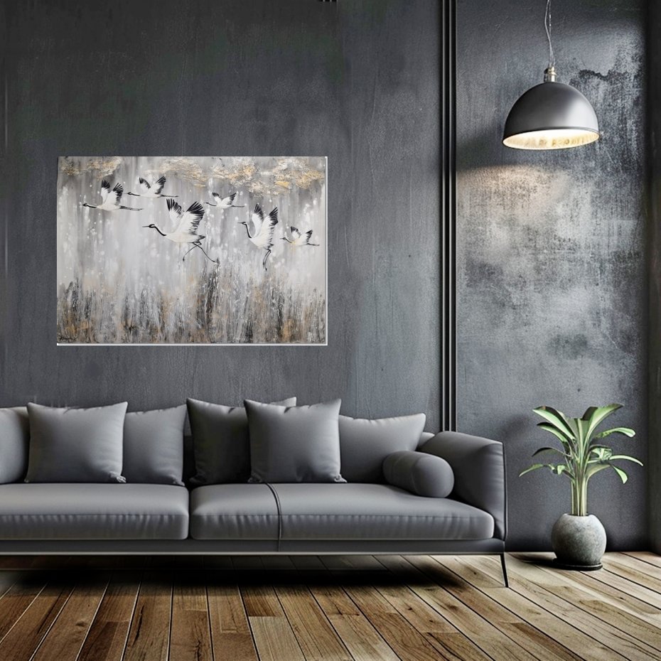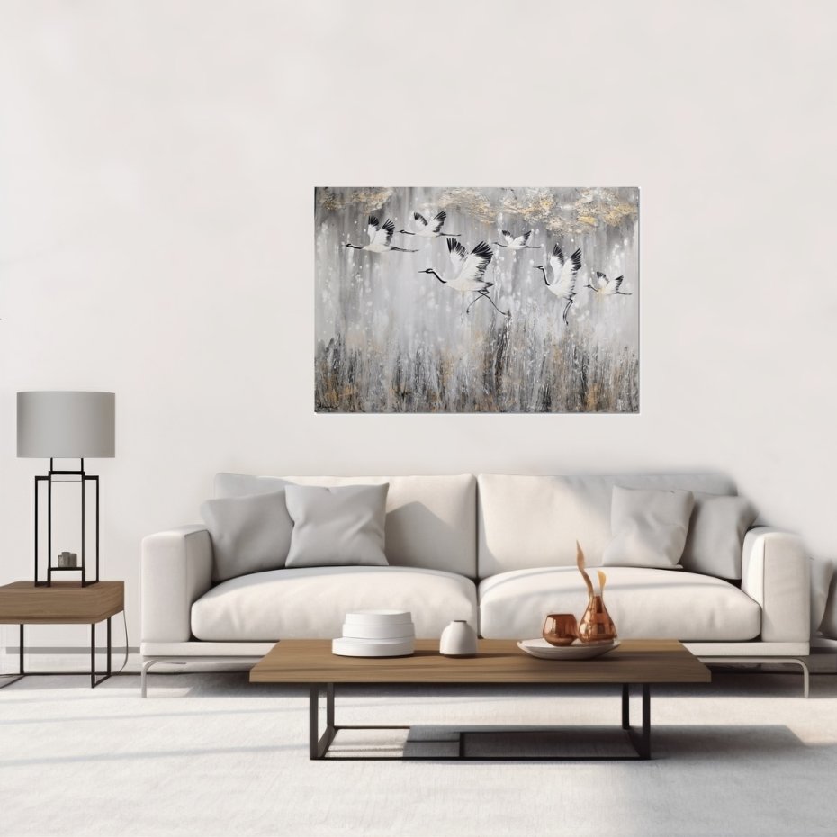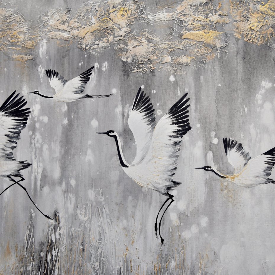 Tagi: #obraz ręcznie malowany, #obraz z ptakami, #obraz żurawie, #obrazy do salonu