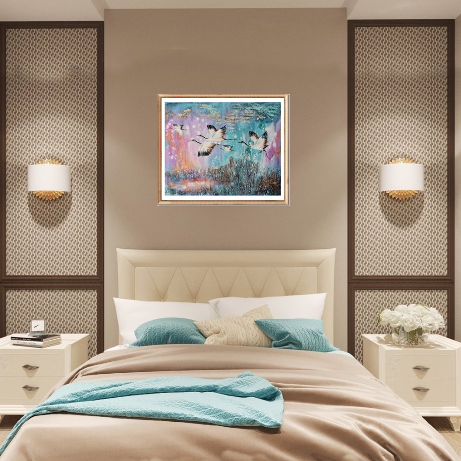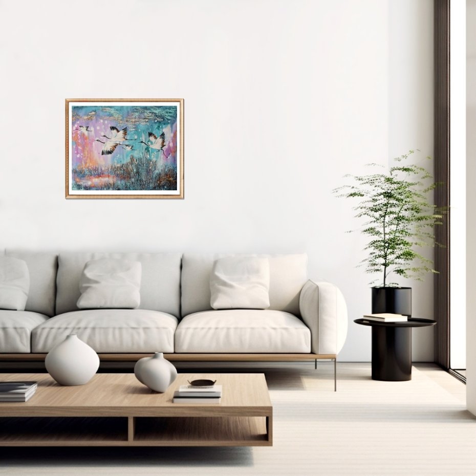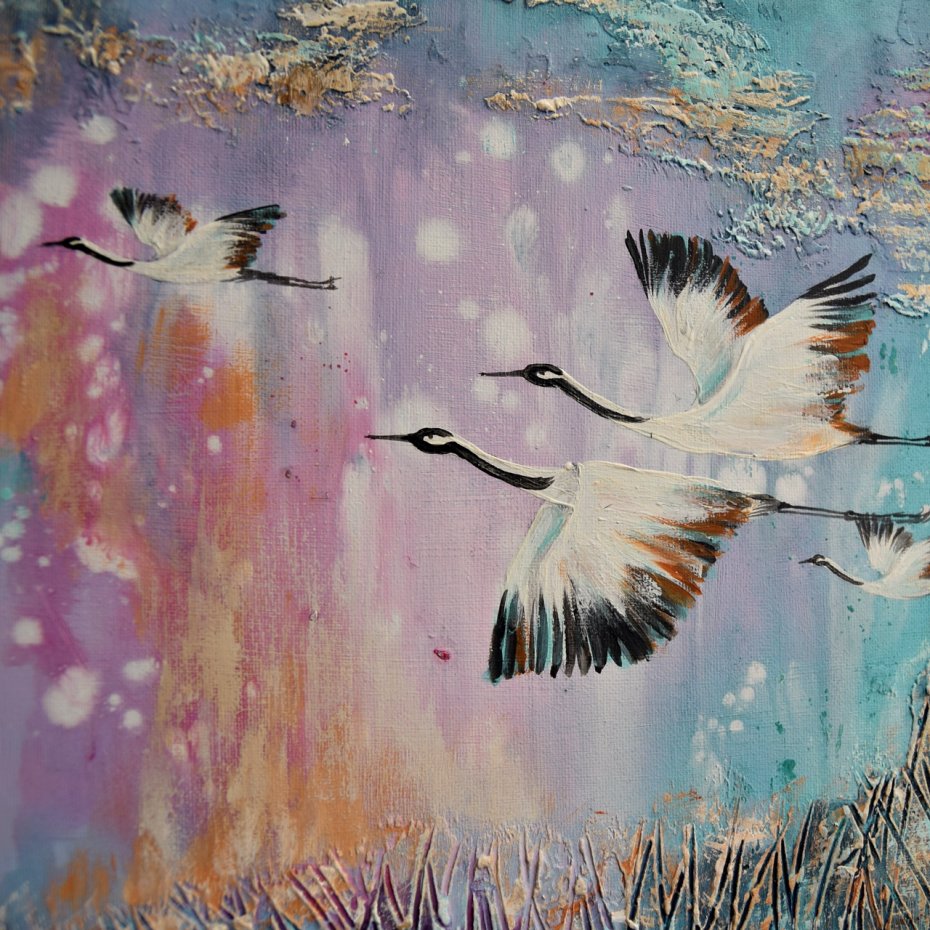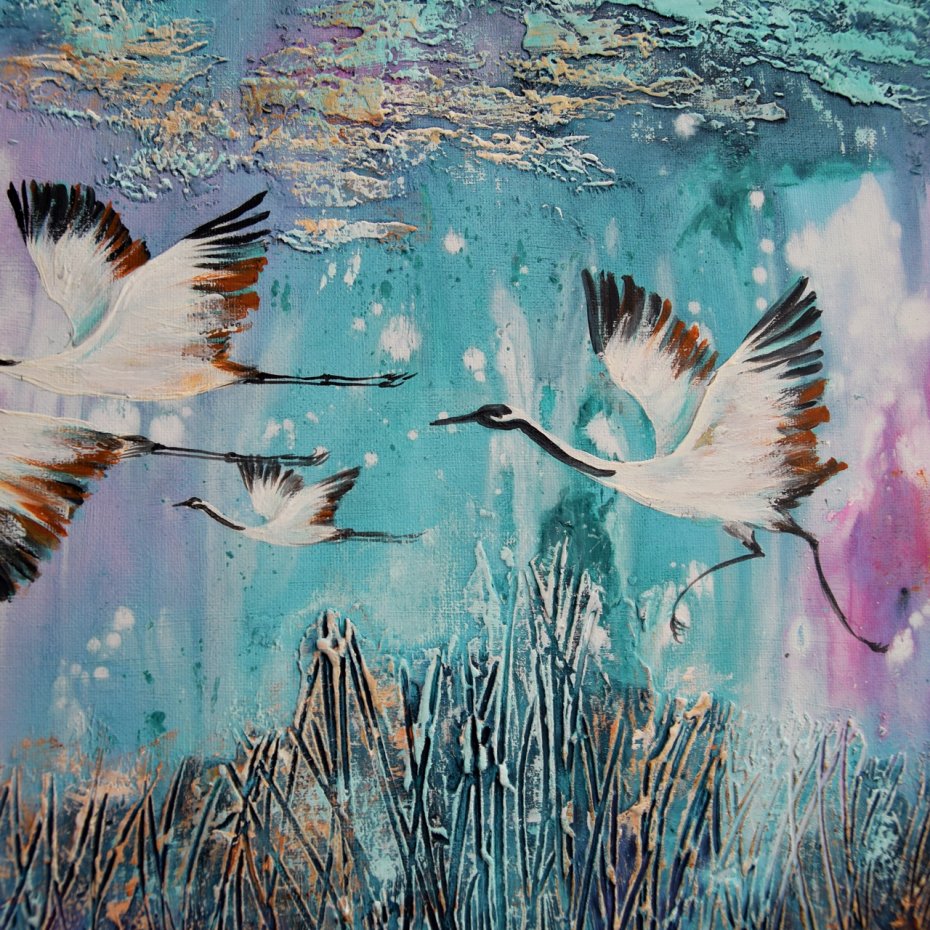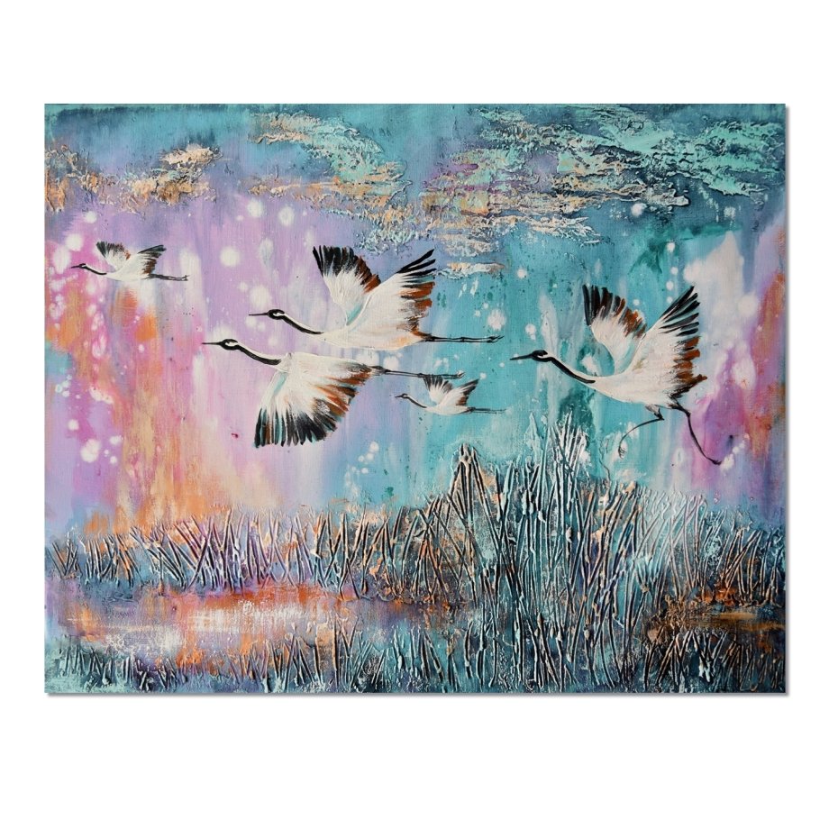 Tagi: #obraz ręcznie malowany, #obraz z ptakami, #obraz żurawie, #obrazy do salonu