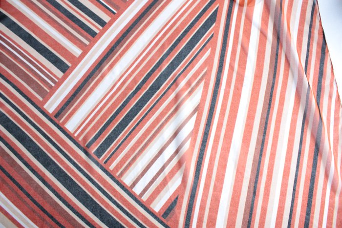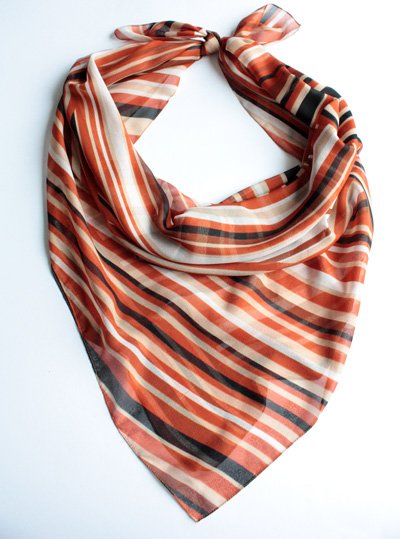 Zwiewna chusta w rude wzory. Materiał oceniam na syntetyk.
