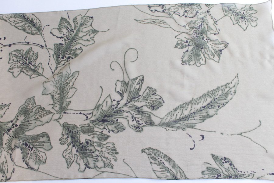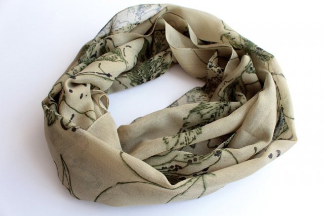 Zwiewny szal w stonowanych odcieniach zieleni.