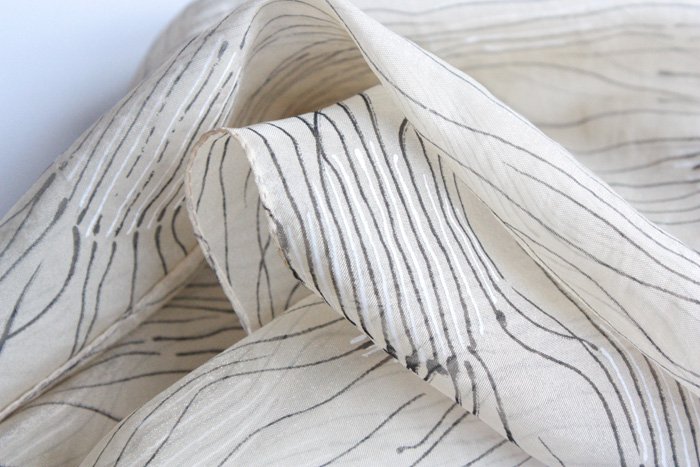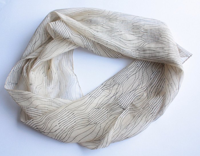 Subtelny, półtransparentny szal w jasnm odcieniu beżu.
