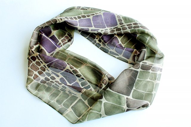 Zwiewny, delikatny szal wykonany prawdopodobnie z poliestru.