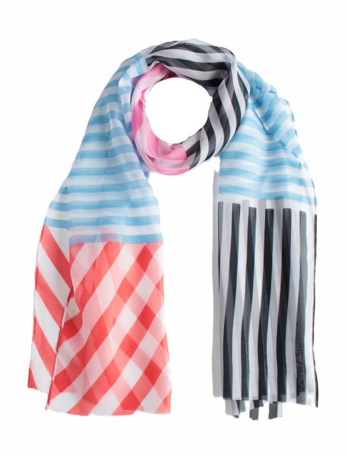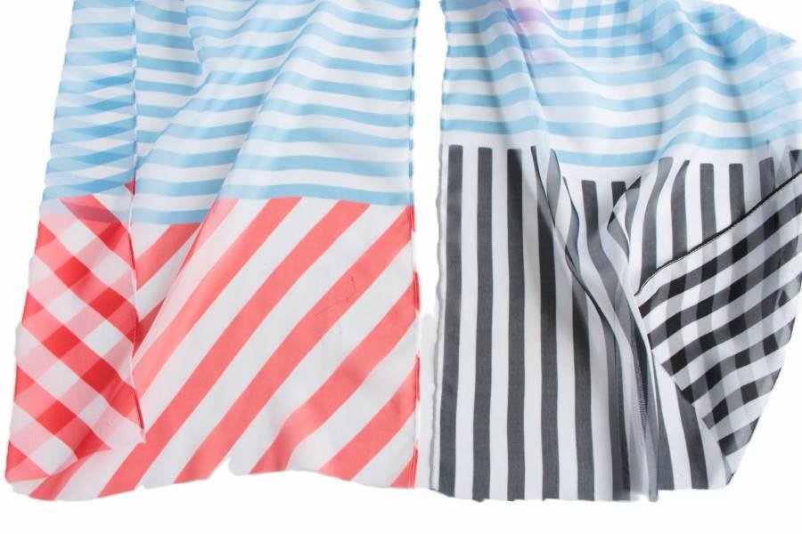 Zwiewny, lekki szal vintage w pasy w różnej konfiguracji.