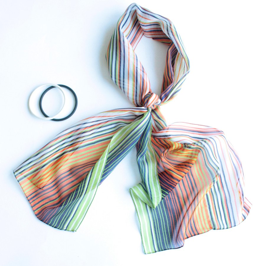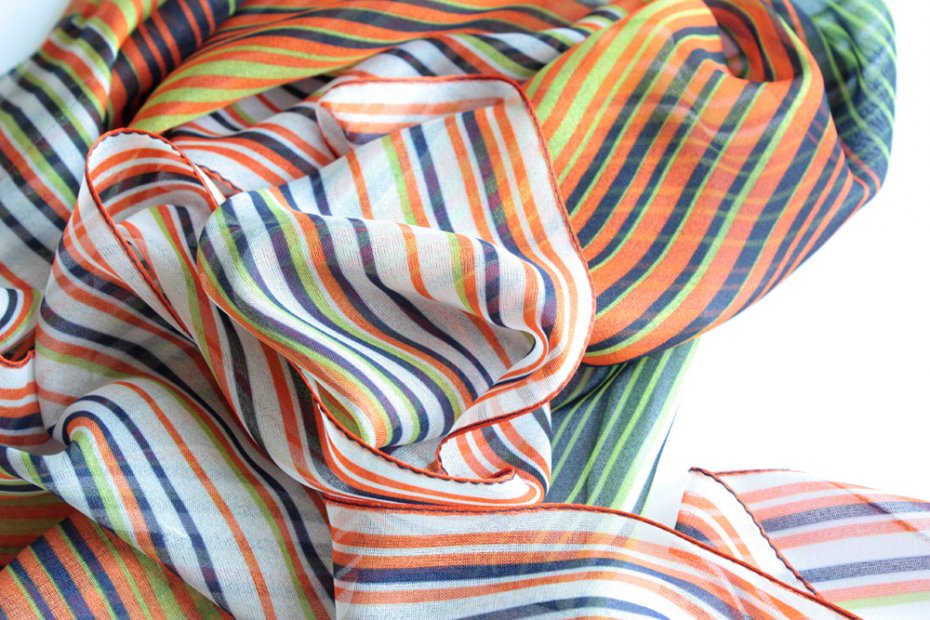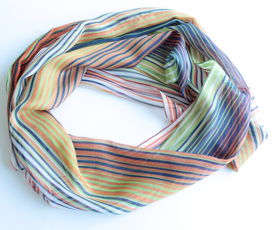 Zwiewny szal w kolorowe prążki.